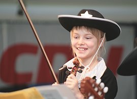 ![]() Eines der Geschwister Fuchs bei ihren musikalischen Darbietungen |